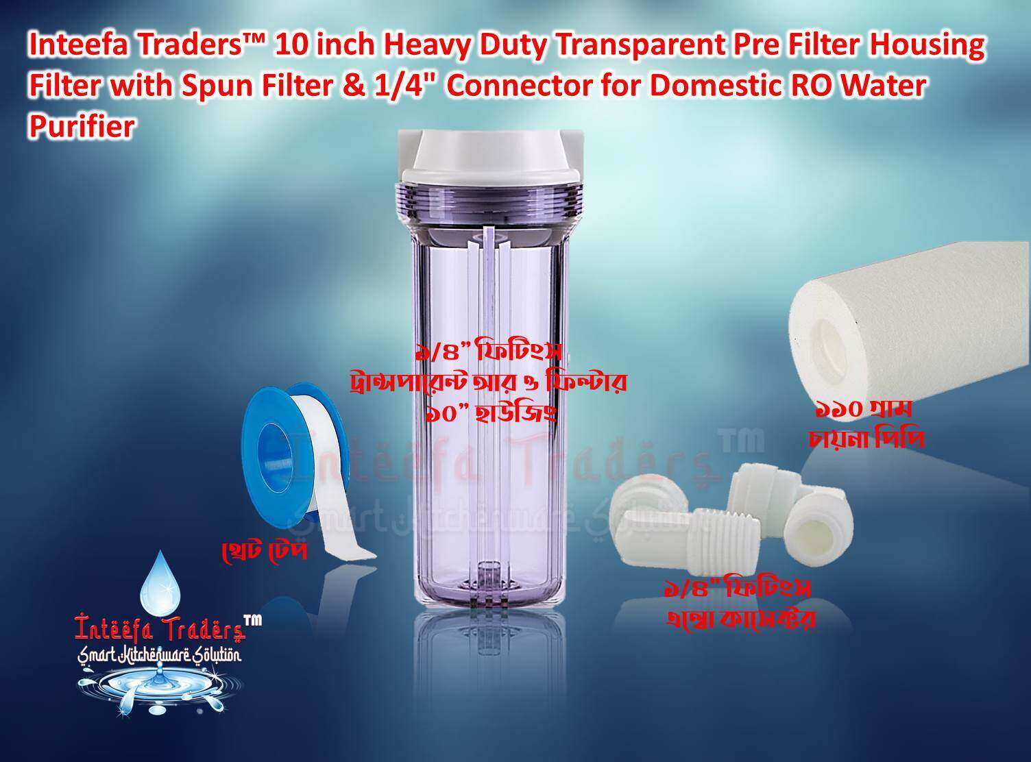 10 inch industry standard size filter to protect and extend the life of the Reverse-Osmosis-System and Useful for all kind of r.o./u.v./u.f. water purifier having 1/4" fittings, 100% food grade: The pre-filter set is made with high quality filtration components to protect and prolong the lifespan of your reverse osmosis system, 10 inch industry standard size filter to protect and extend the life of the Reverse-Osmosis-System and Useful for all kind of r.o./u.v./u.f. water purifier having 1/4" fittings.