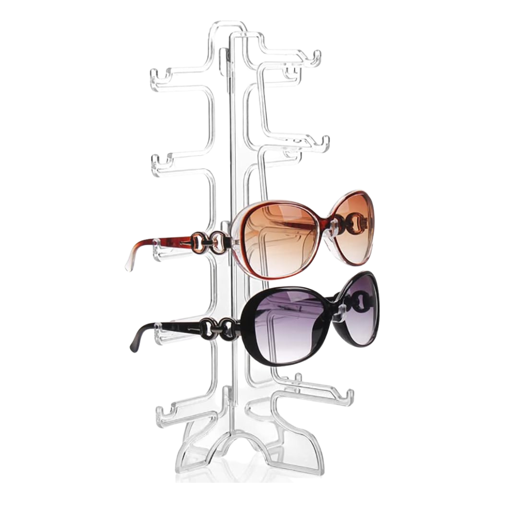 The Sunglasses Holder Stand is a sleek and durable 1-row organizer designed to hold up to 5 pairs of sunglasses. Perfect for shop displays, presentations, or personal collections, it offers a stylish way to showcase your eyewear. Its clear acrylic design allows for easy visibility, making it ideal for retail environments or tabletop use. This organizer is compact, sturdy, and easy to assemble, providing an elegant and practical solution for keeping your sunglasses organized and beautifully displayed. Suitable for shops, showrooms, or personal use.