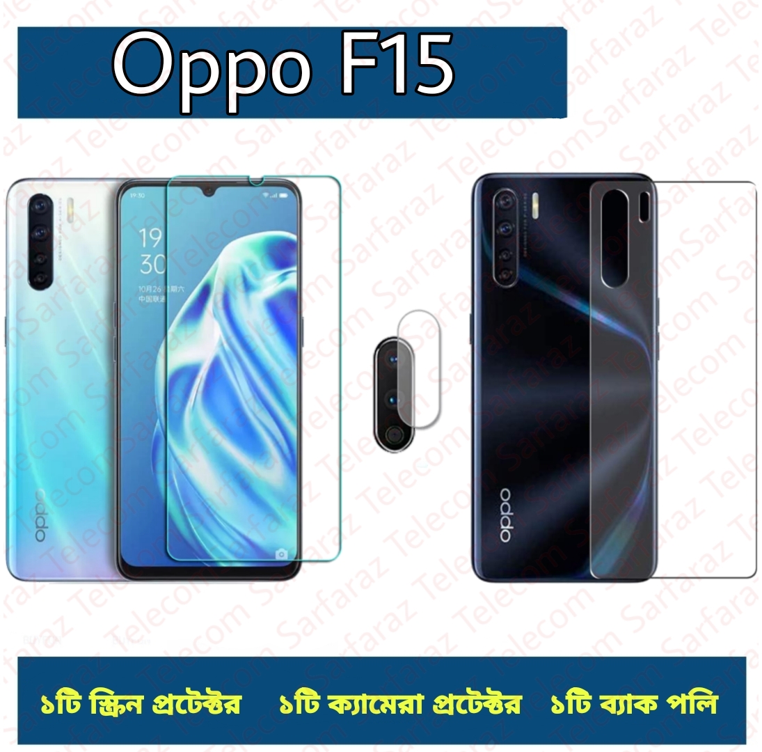 3in1 Combo For Oppo F15 9D Screen Protector + Ultra Thin Back Poly + Camera Glass
