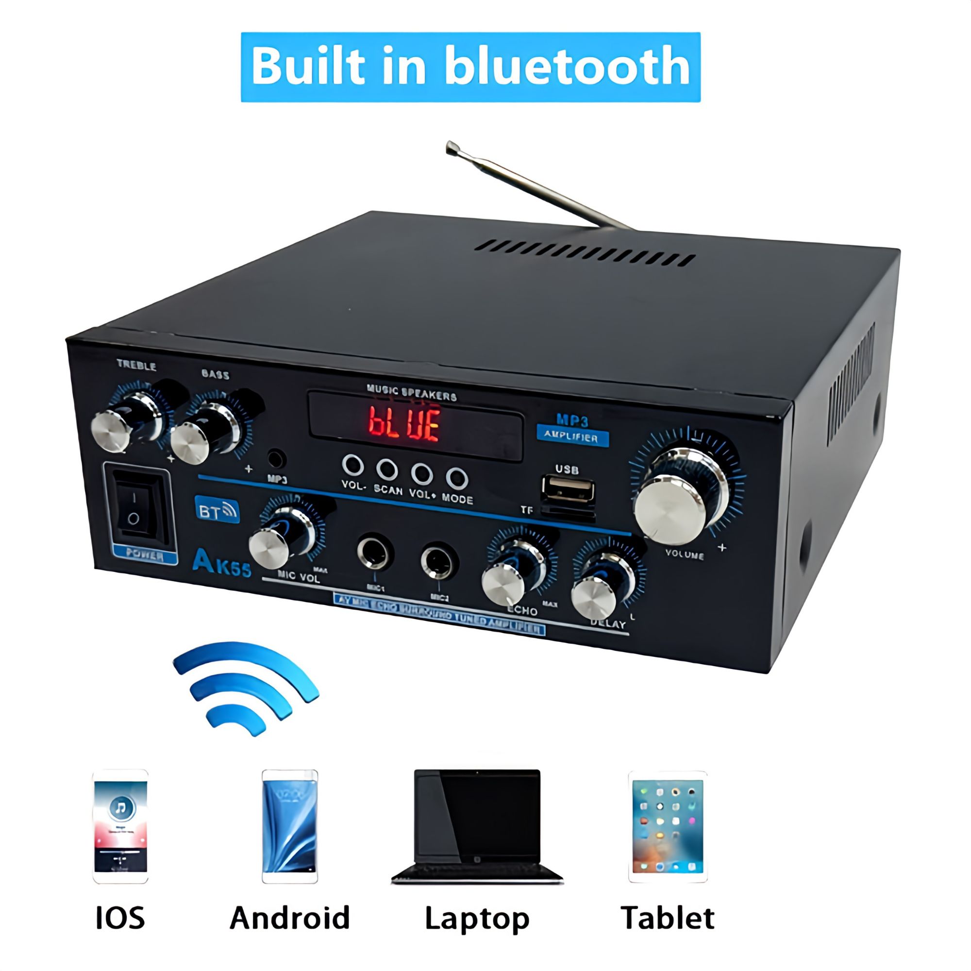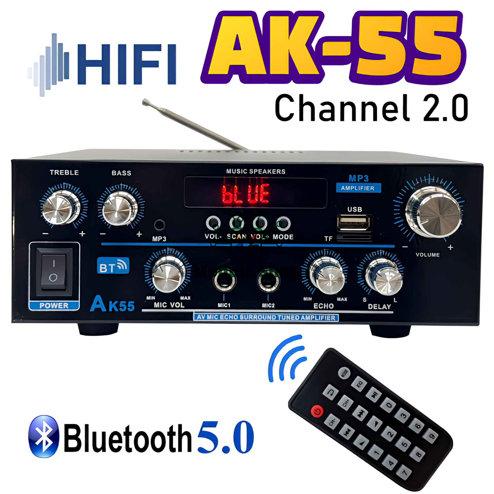 Input Option: BT/USB/RCA/AUX/MIC/OPT/COA