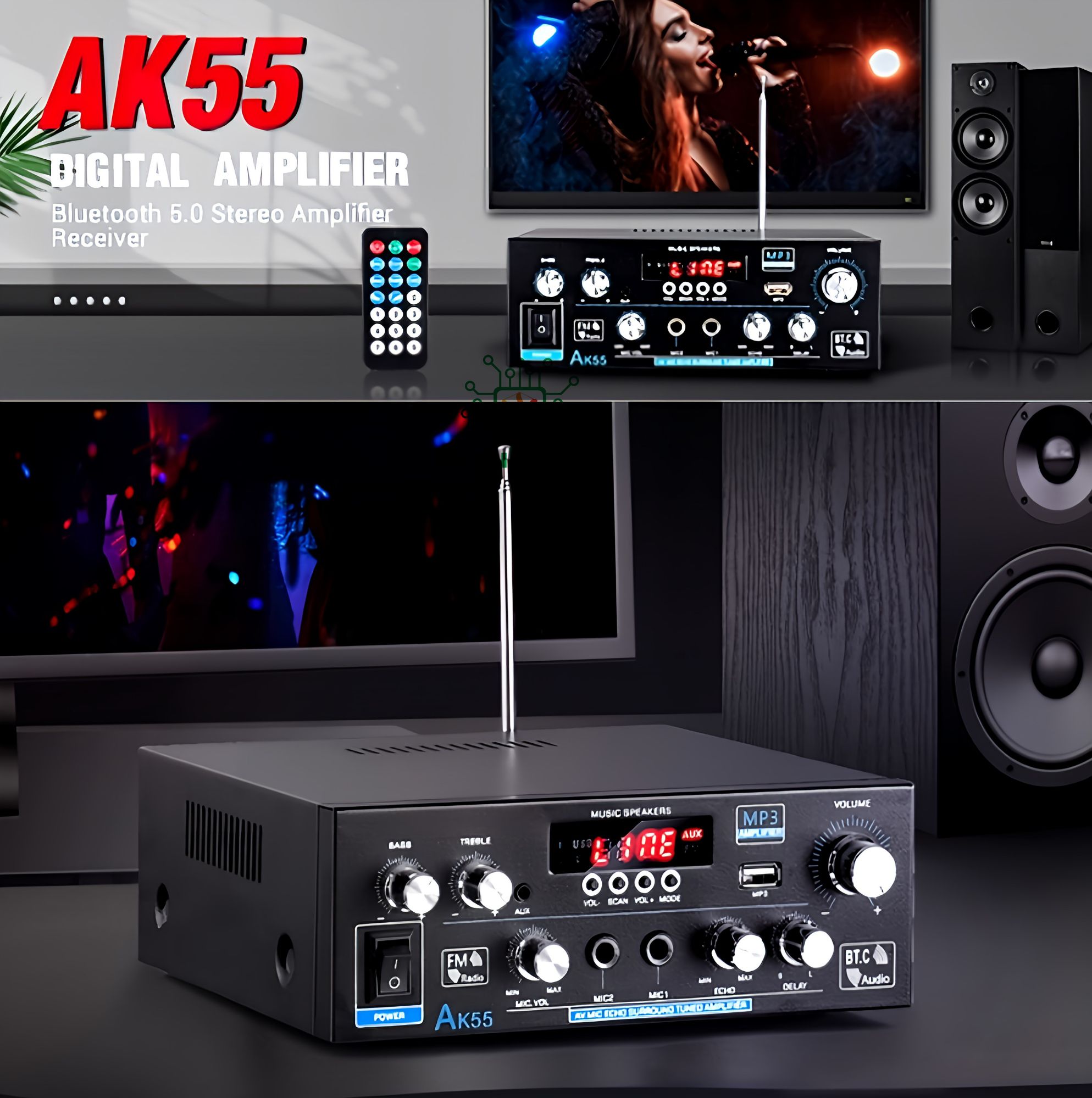 Feature1: Treble/Bass/MIC Vol Adjustable