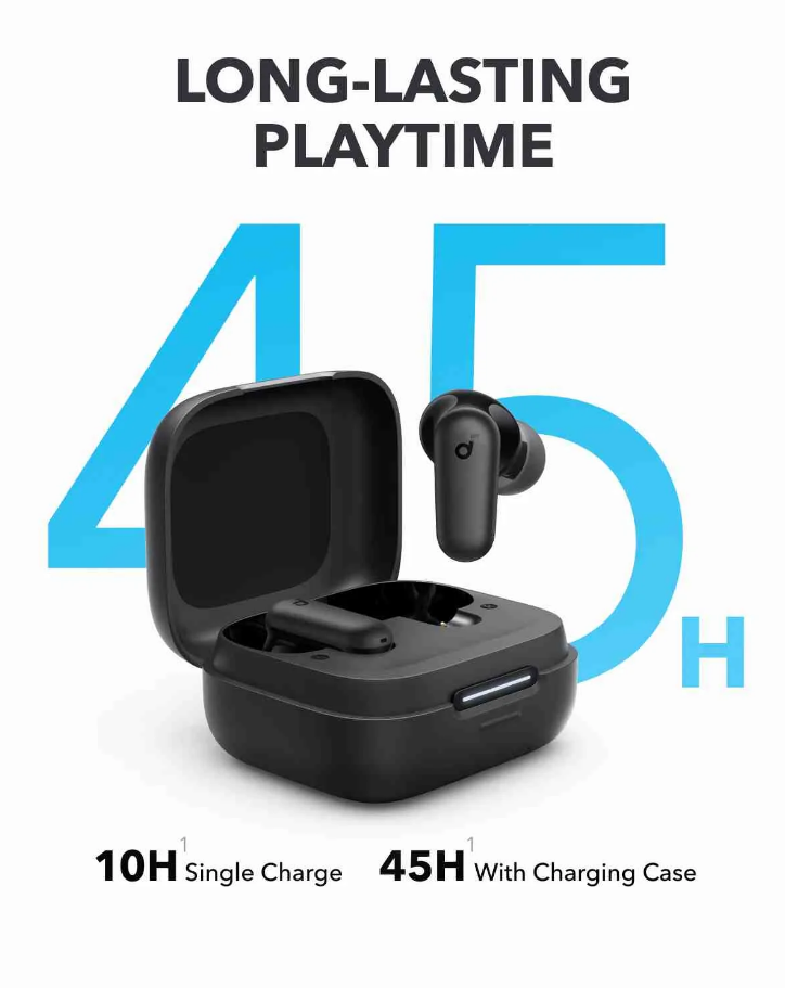 The Soundcore R50i NC by Anker offers industry-leading value with 42 dB adaptive ANC, deep BassUp™-enhanced sound via 10 mm drivers, and up to 40 hours of total playback. With Bluetooth 5.3, dual-device support, and four AI-powered microphones, calls sound crystal clear even in noisy settings.