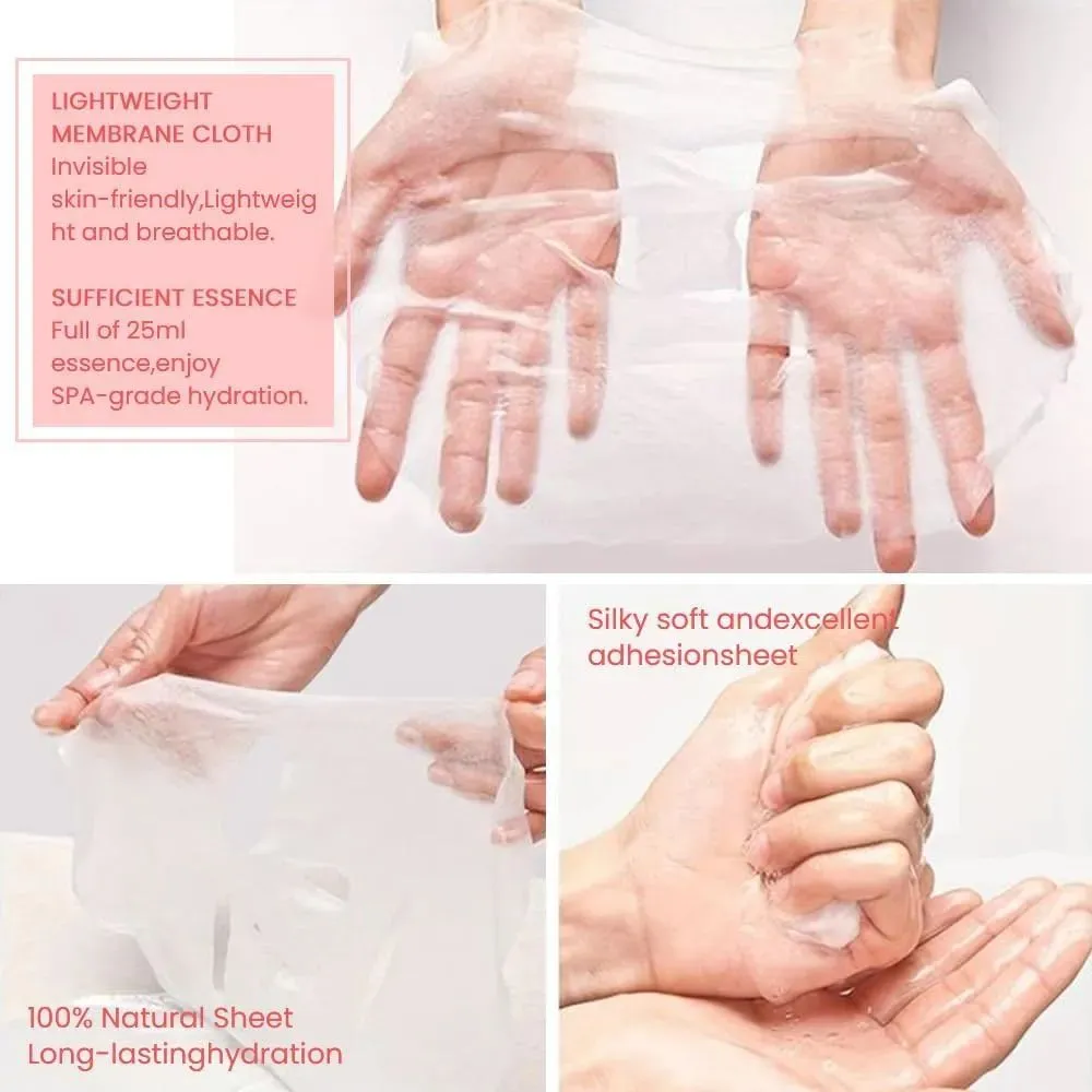 【Hydrating & Brightening】: The face mask sheet is rich in hyaluronic acid and collagen, which helps improve dry and rough skin, relieves skin fatigue, brightens facial complexion, and brings a moist and youthful look.