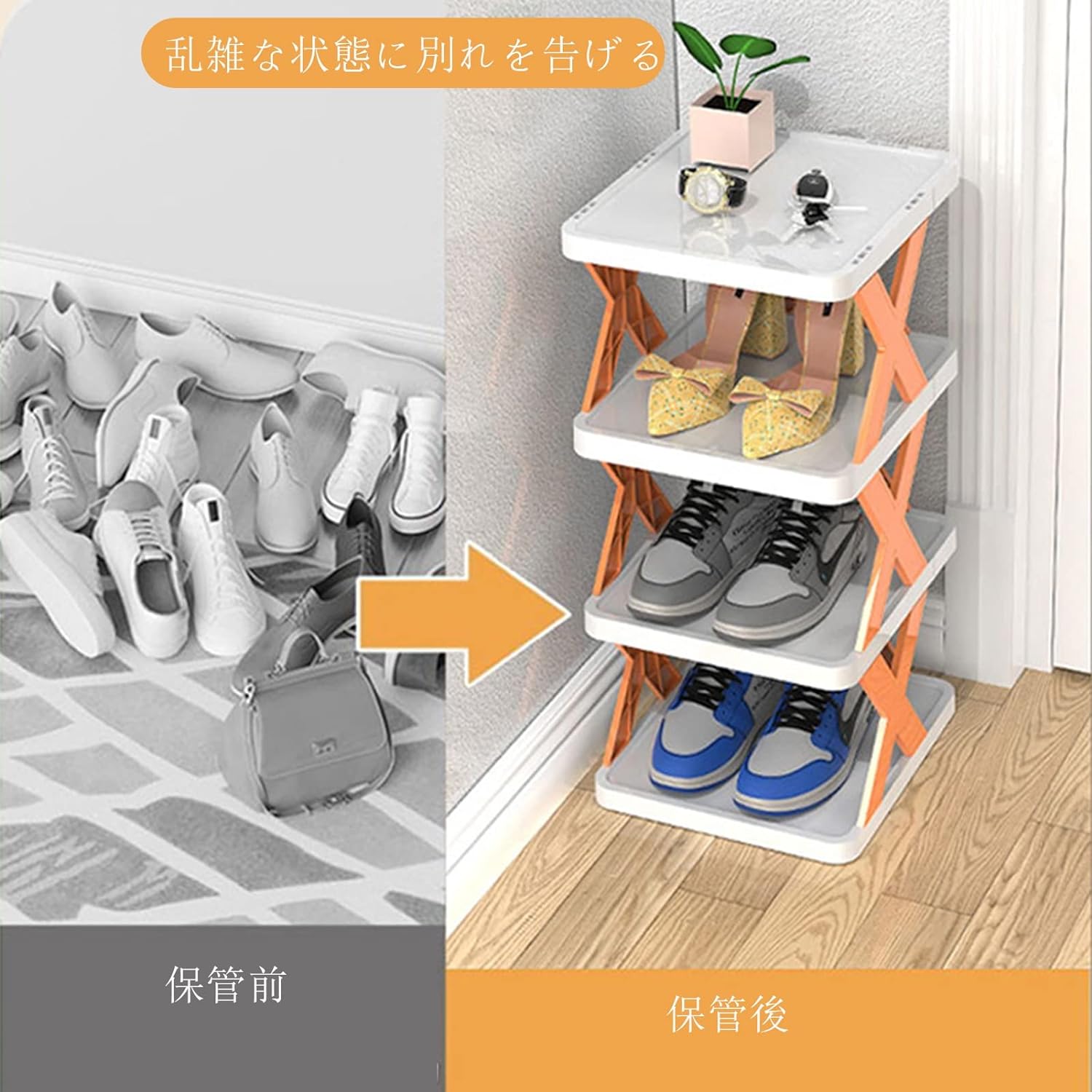 - 【Space saving】This folding shoe rack is compact and convenient. Helps keep shoes organized and stacked vertically in tight spaces. Create a neat and organized home corner with this folding shoe rack