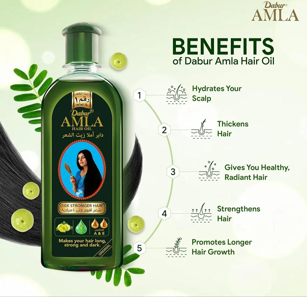 - INGREDIENTS; The Dabur Amla Natural Care Hair Oil is enhanced with the benefits of Amla Fruit, essential oils; and other natural ingredients in addition to the proprietary traditional mix.