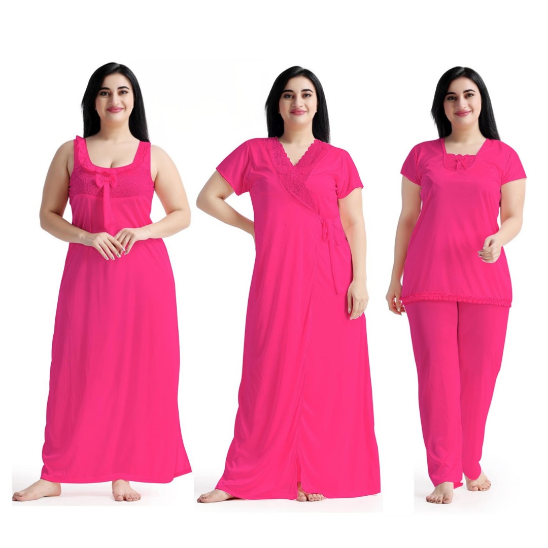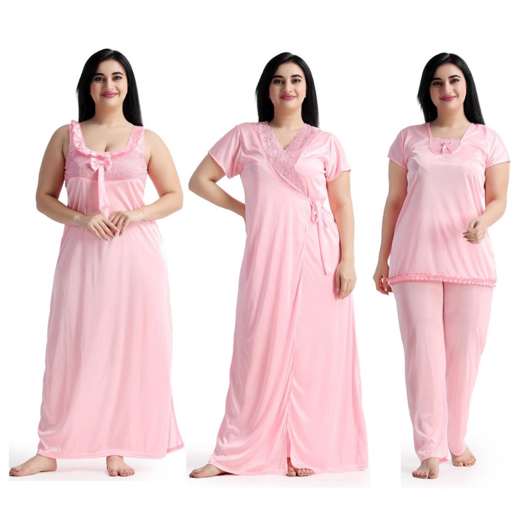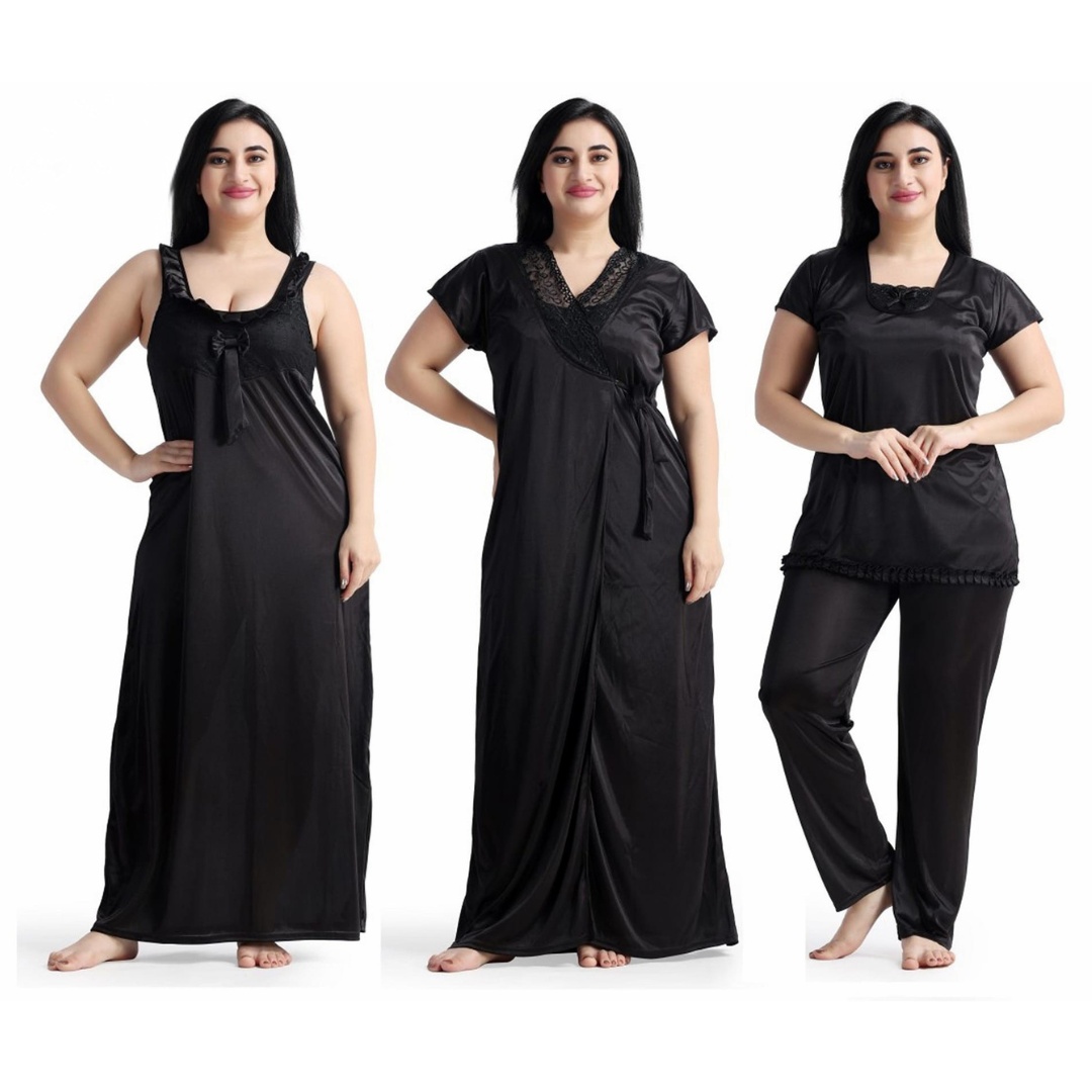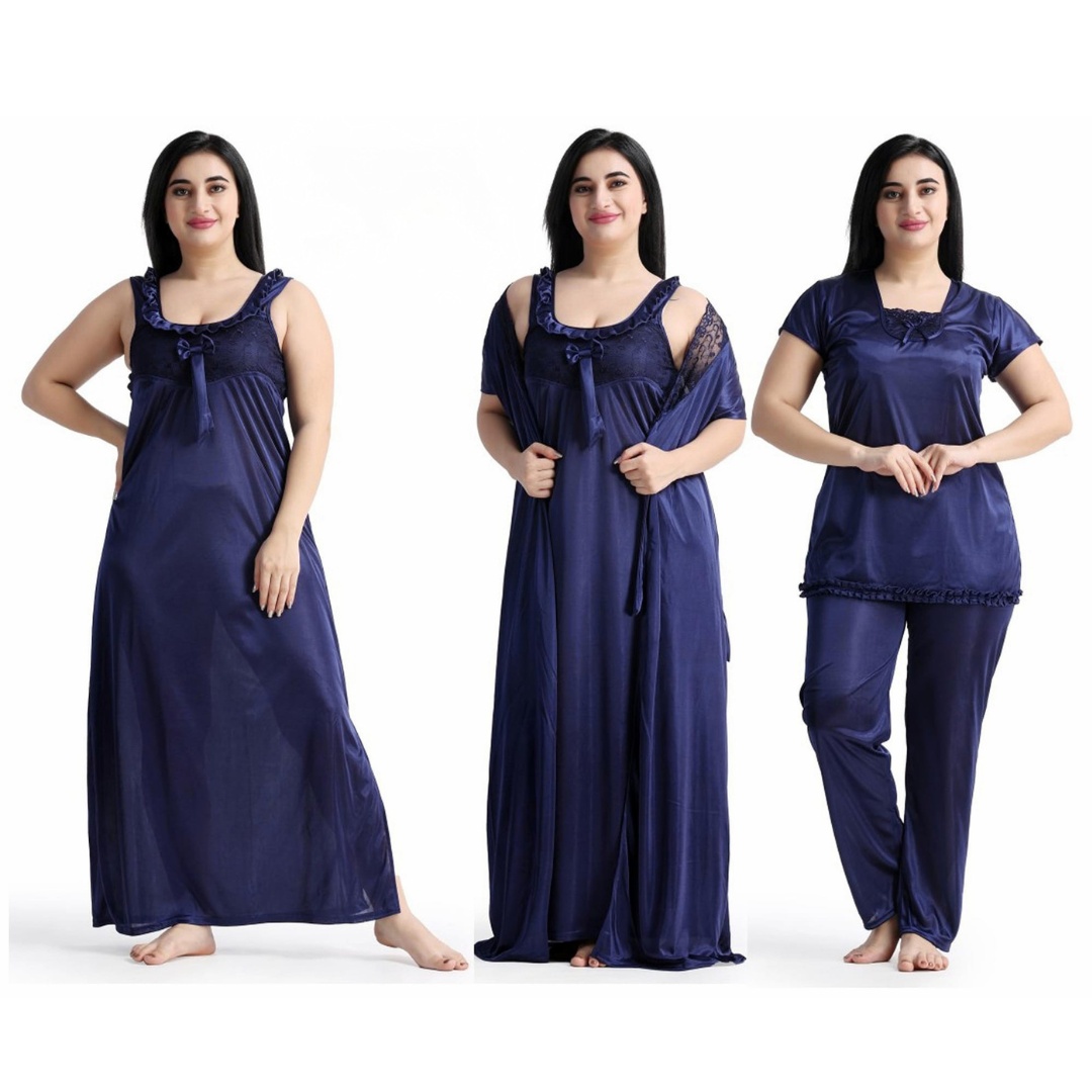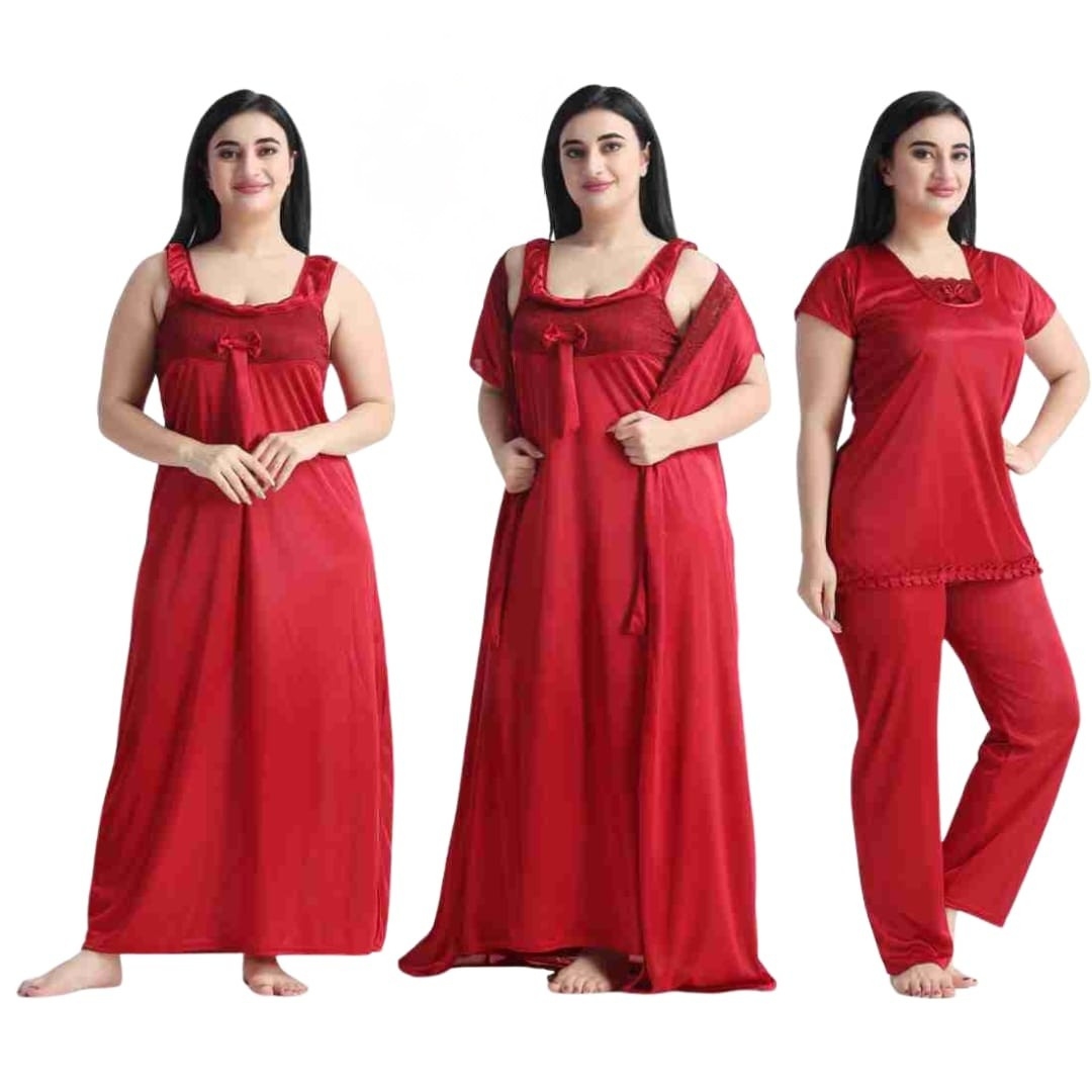 প্রিমিয়াম 4 অংশ সাটিন সলিড ওমেন নাইটি সেট - মার্জিত এবং পরিমার্জিত নাইট ড্রেস - আরামদায়ক এবং সেক্সি নাইট পরিধান