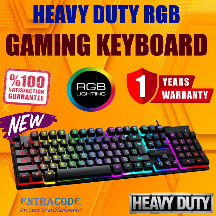 Take your gaming to the next level with this Heavy Duty RGB Gaming Keyboard, built for durability, precision, and style. Designed with high-quality mechanical-feel keys, it delivers fast response and long-lasting performance — perfect for intense gaming sessions or everyday typing. The RGB backlight adds a premium look to your setup and lets you game in style, even in the dark!