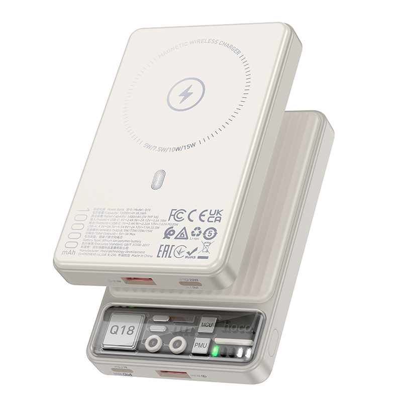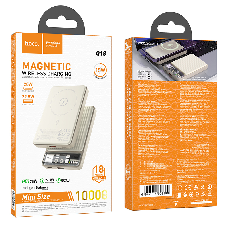 The Hoco Q18 Tourer 22.5W power bank with magnetic wireless fast charging is a cutting-edge mobile accessory that provides efficient and fully compatible charging for your mobile devices. Equipped with an LED indicator, it allows for easy monitoring of the power bank's battery level. Its sleek design and fast charging capabilities make it a convenient and reliable option for on-the-go charging. This power bank is designed to offer seamless and reliable charging for your devices, ensuring you stay connected wherever you are. With its magnetic wireless fast charging feature, it provides added convenience for charging your devices on the move, making it an essential companion for your mobile lifestyle. The Hoco Q18 power bank is the perfect blend of style and functionality, ensuring that you never run out of power when you need it the most. With its 22.5W power output, it delivers fast and efficient charging for your devices, keeping you powered up throughout the day. The LED indicator allows for easy monitoring of the power bank's battery level, ensuring that you are always aware of its remaining charge. This power bank is designed to be a reliable and convenient mobile accessory, providing seamless and efficient charging for your devices, making it an essential companion for your on-the-go lifestyle. With its sleek design and fast charging capabilities, the Hoco Q18 Wireless power bank is a must-have for anyone who needs reliable and convenient charging for their mobile devices. This power bank is designed to offer efficient and fully compatible charging for your mobile devices, ensuring that you stay connected wherever you are. The Hoco Q18 power bank is the perfect blend of style and functionality, ensuring that you never run out of power when you need it the most. The LED indicator enables easy monitoring of the power bank's battery level, providing you with peace of mind and convenience. With its magnetic wireless fast charging feature, it provides added convenience for charging your devices on the move, making it an essential companion for your mobile lifestyle. This power bank is designed to offer seamless and reliable charging for your devices, ensuring you stay connected wherever you are. With its 22.5W power output, it delivers fast and efficient charging for your devices, keeping you powered up throughout the day. The Hoco Q18 power bank is the perfect blend of style and functionality, ensuring that you never run out of power when you need it the most. The LED indicator allows for easy monitoring of the power bank's battery level, ensuring that you are always aware of its remaining charge. This power bank is designed to be a reliable and convenient mobile accessory, providing seamless and efficient charging for your devices, making it an essential companion for your on-the-go lifestyle. With its sleek design and fast charging capabilities, the Hoco Q18 Wireless power bank is a must-have for anyone who needs reliable and convenient charging for their mobile devices. The Hoco Q18 power bank is designed to offer efficient and fully compatible charging for your mobile devices, ensuring that you stay connected wherever you are. The LED indicator enables easy monitoring of the power bank's battery level, providing you with peace of mind and convenience. With its magnetic wireless fast charging feature, it provides added convenience for charging your devices on the move, making it an essential companion for your mobile lifestyle. This power bank is designed to offer seamless and reliable charging for your devices, ensuring you stay connected wherever you are. With its 22.5W power output, it delivers fast and efficient charging for your devices, keeping you powered up throughout the day. The Hoco Q18 power bank is the perfect blend of style and functionality, ensuring that you never run out of power when you need it the most. The LED indicator allows for easy monitoring of the power bank's battery level, ensuring that you are always aware of its remaining charge. This power bank is designed to be a reliable and convenient mobile accessory, providing seamless and efficient charging for your devices, making it an essential companion for your on-the-go lifestyle. With its sleek design and fast charging capabilities, the Hoco Q18 Wireless power bank is a must-have for anyone who needs reliable and convenient charging for their mobile devices. The Hoco Q18 power bank is designed to offer efficient and fully compatible charging for your mobile devices, ensuring that you stay connected wherever you are. The LED indicator enables easy monitoring of the power bank's battery level, providing you with peace of mind and convenience. With its magnetic wireless fast charging feature, it provides added convenience for charging your devices on the move, making it an essential companion for your mobile lifestyle. This power bank is designed to offer seamless and reliable charging for your devices, ensuring you stay connected wherever you are. With its 22.5W power output, it delivers fast and efficient charging for your devices, keeping you powered up throughout the day. The Hoco Q18 power bank is the perfect blend of style and functionality, ensuring that you never run out of power when you need it the most. The LED indicator allows.