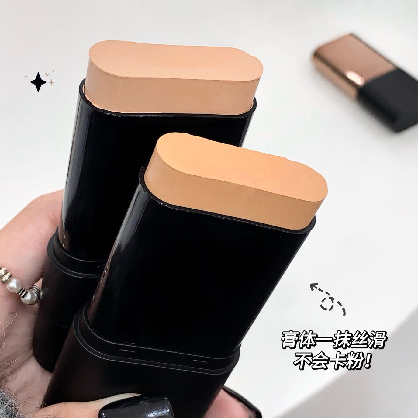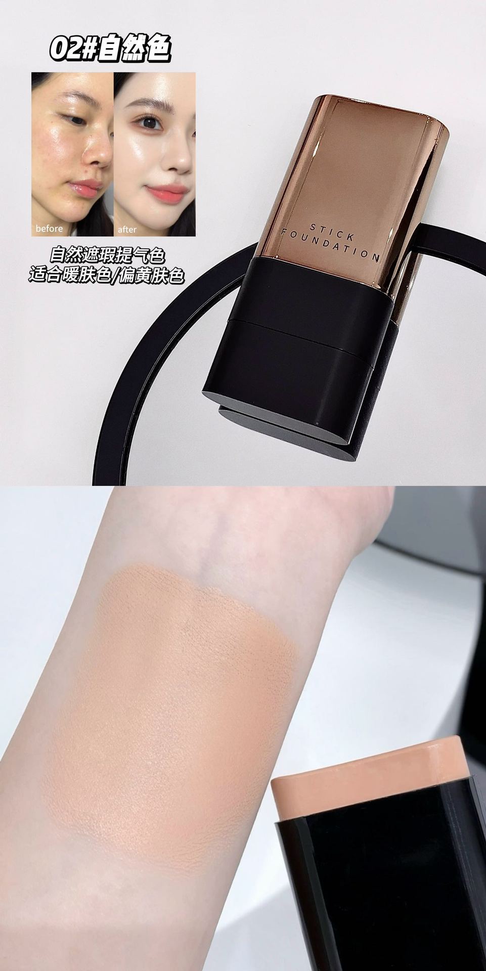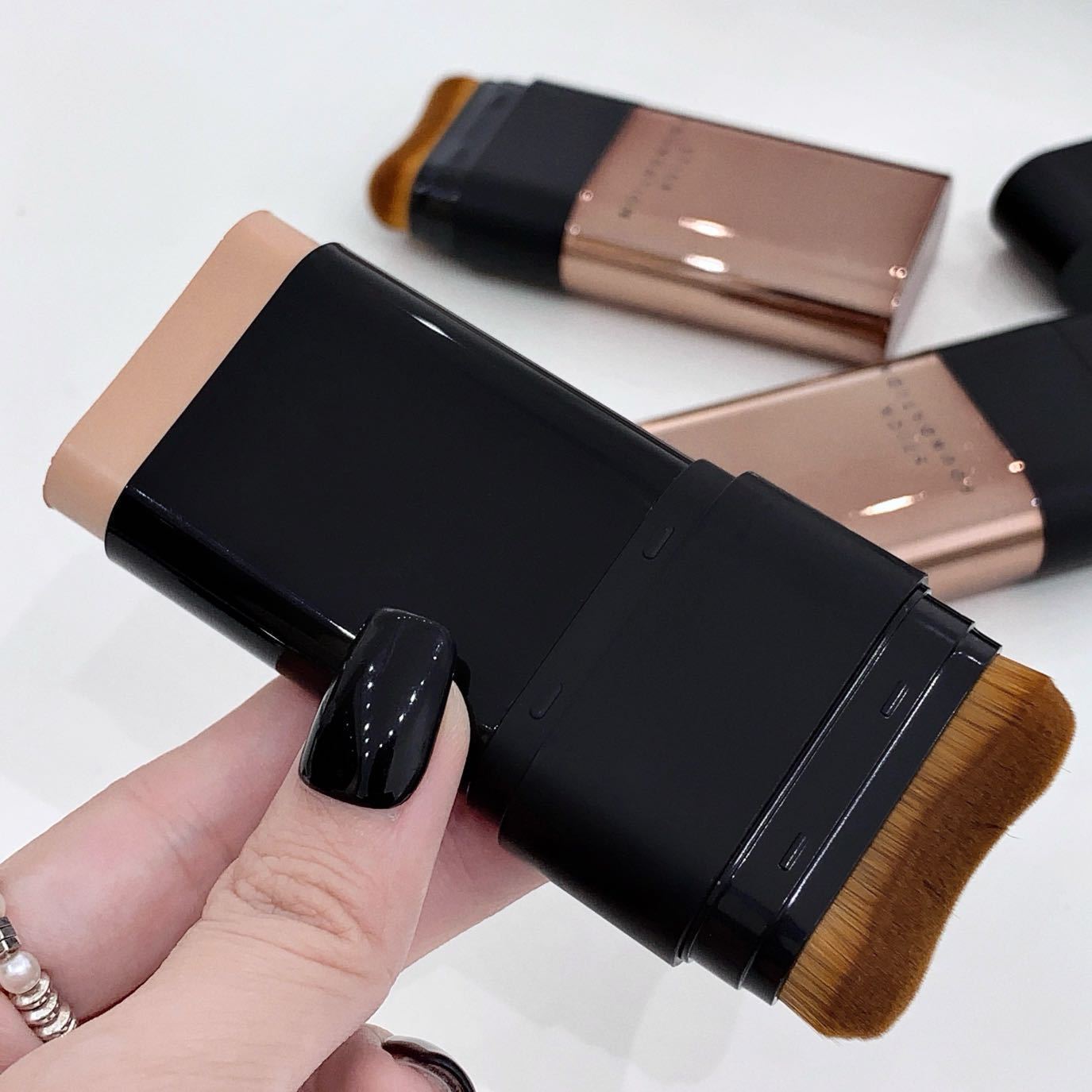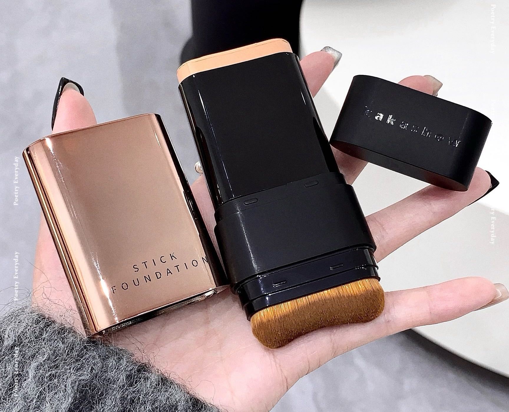 - Kakashow Water Glow Foundation Stick with an attached brush for application