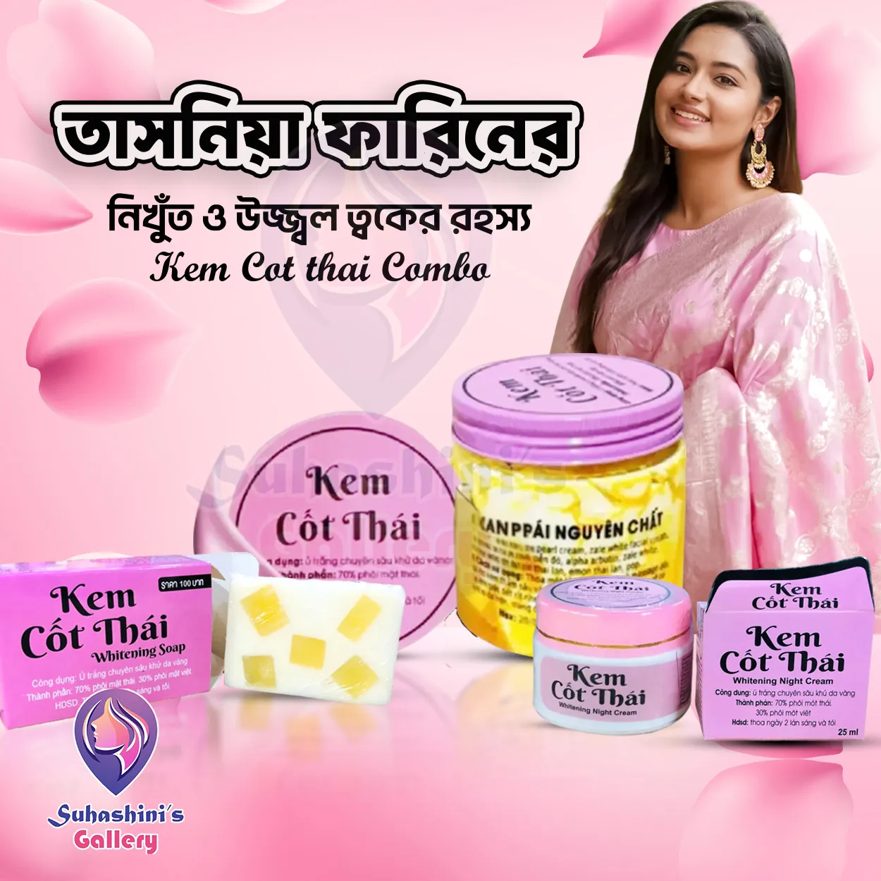 The Kem Kot Thai Complete Glow Combo is an all-in-one skincare set designed to brighten, hydrate, and nourish your skin. This premium skincare trio includes a Body Cream, Night Cream, and Soap, each formulated with powerful natural extracts to help achieve a radiant and even-toned complexion.