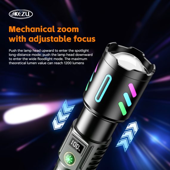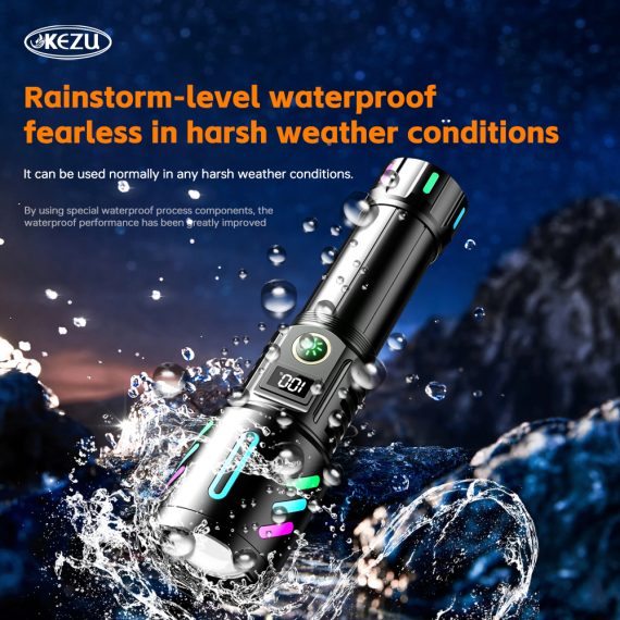 Kezu Aluminum Alloy Strong Light Flashlight , Power Display , Night Fluorescent Strip ( KH - W515 )
