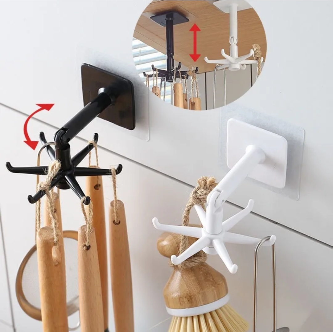 - The new six-jaw 360-degree swivel hook comes with a patch and can be installed without drilling.