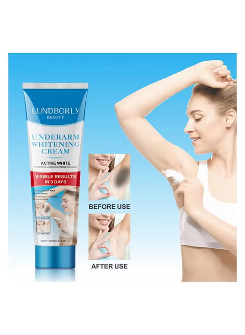 The Lundborly Beauty Underarm Whitening Cream is a vegan, 100ml formula designed for adult skincare, targeting hyperpigmentation and underarm darkening. Enriched with hyaluronic acid, aloe vera, vitamins C & E, and glycerin, it delivers lightening, moisturizing, and anti-aging benefits. With visible results in 3 days and powerful antioxidants, this cream combines efficacy and nourishment for radiant, even-toned underarm skin.