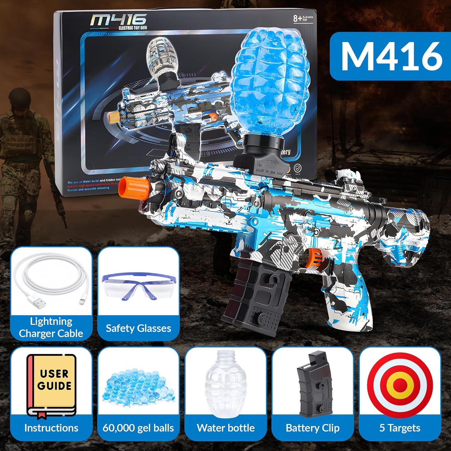 - Fun kids' toy: M416 Electric Gel Bead Blaster – Rechargeable, Outdoor Shooting Game Fun