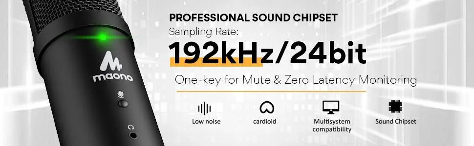 headphone jack feature for zero-latency monitoring.One-key mute/unmute