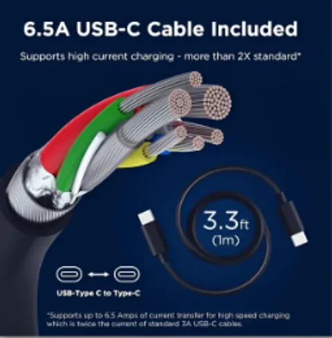 - Current: Up to 6.5A (Cable rating)