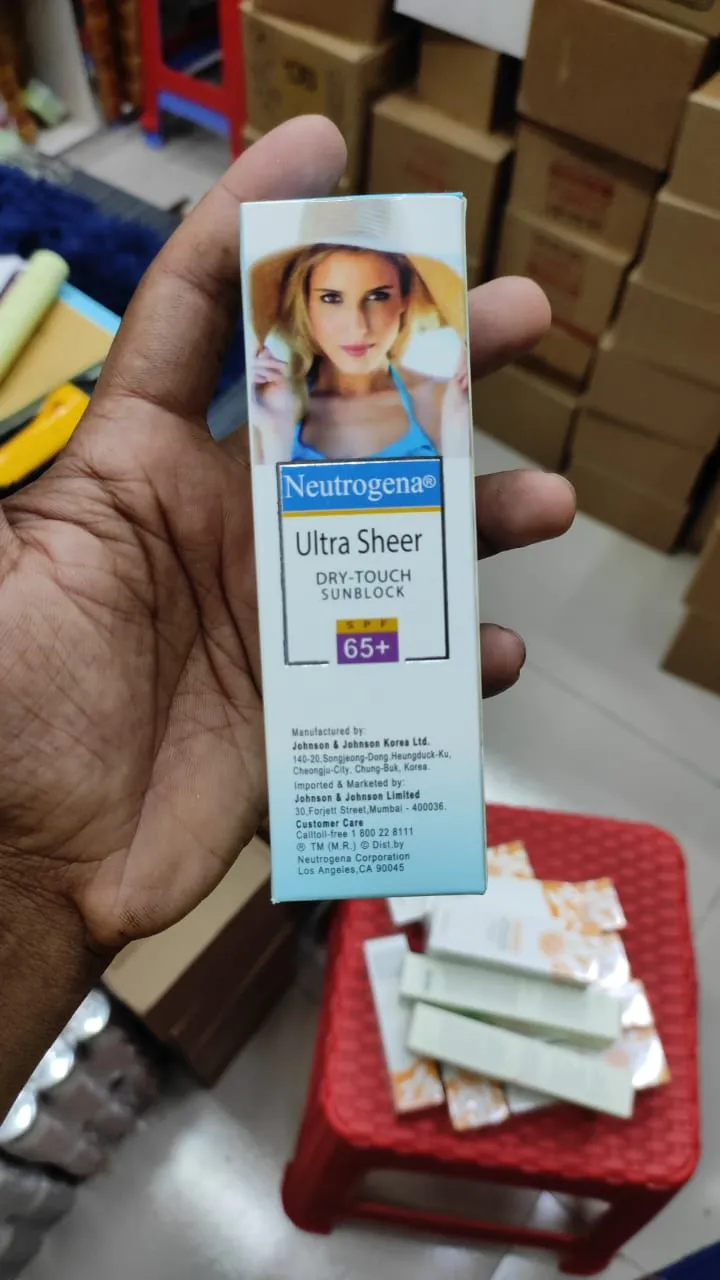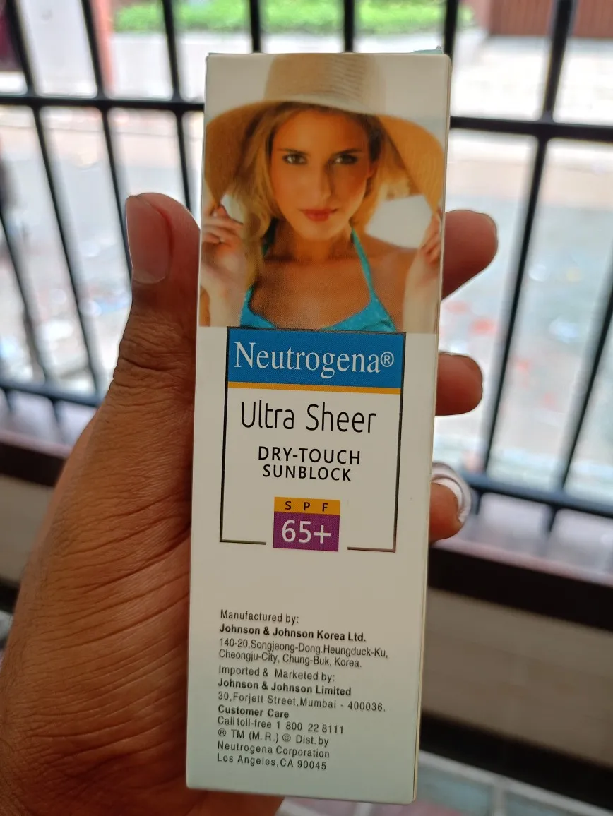 - Neutrogena Ultra Sheer Dry-Touch Sunblock SPF 65+ / SPF 50+ for broad-spectrum sun protection.