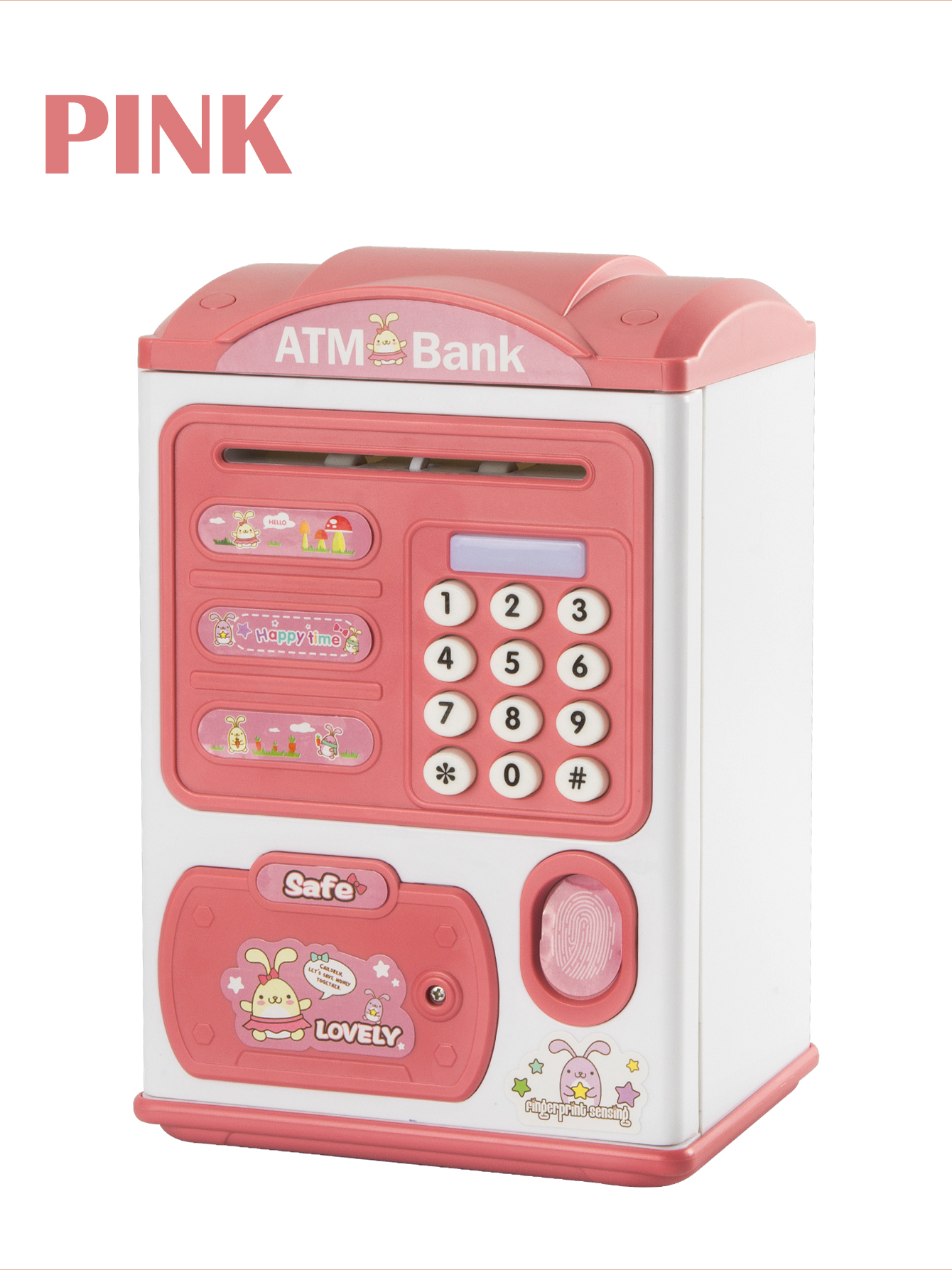 This toy includes an automatic coin rolling feature, making deposits quick and enjoyable. Kids simply place a coin near the slot, and the bank smoothly pulls it in—just like a real electronic safe. Its fingerprint simulator (not a real biometric scanner) lets children feel like they’re using advanced technology to unlock their savings while keeping things simple and safe.
