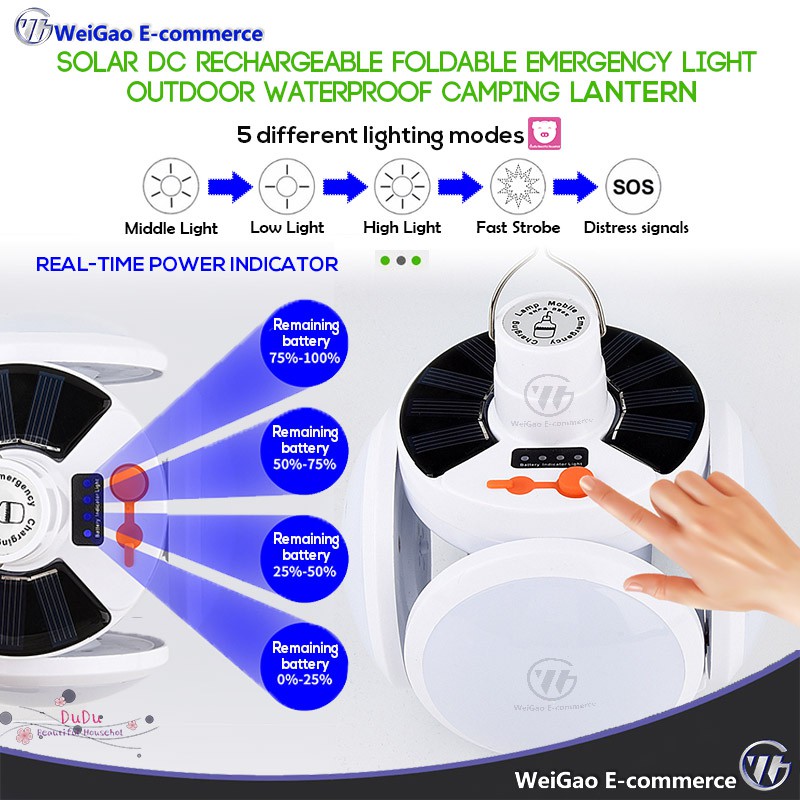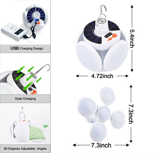 Charging time: more than 8 hours for solar charging/Charger for more than 6 hours for usb charging