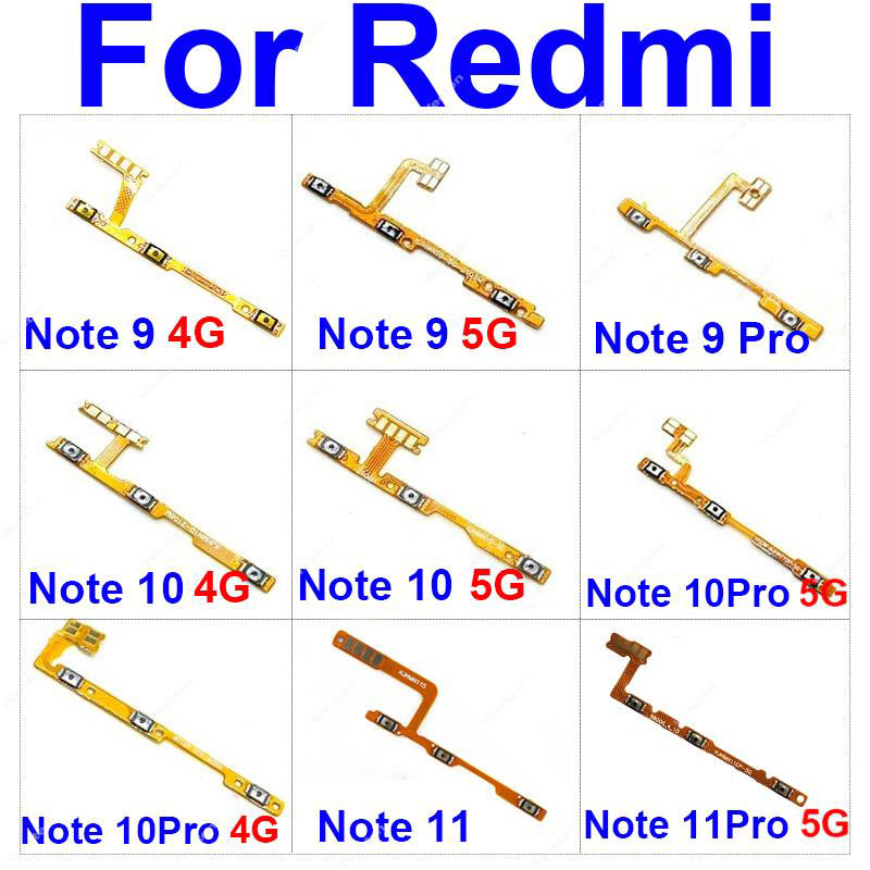 Redmi Note 9, 10 Pro, Note 11, 11S 4G/5G Power On/Off Switch Button + Side Volume Up/Down Buttons Flex Cable Replacement Parts