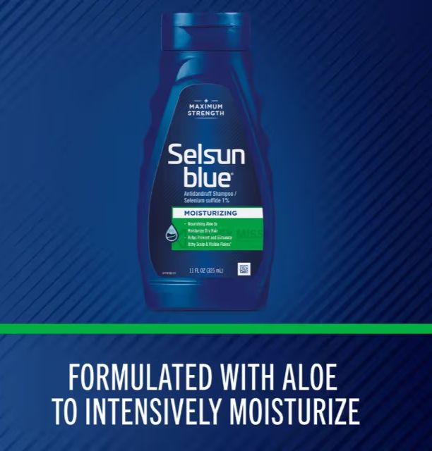 - Hydrate dry hair with Selsun blue® Moisturizing Antidandruff Shampoo. It contains nourishing aloe to intensively moisturize your hair while providing maximum strength, targeted dandruff control.**