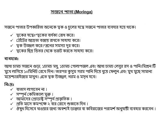 - ত্বক উজ্জল করে।*ব্রনের সমস্যা দূর করে।