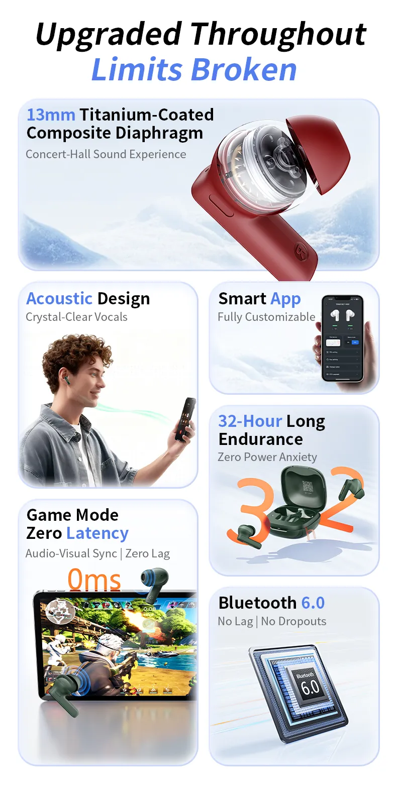 Bluetooth 6.0, they deliver a stable connection and quick pairing. A
