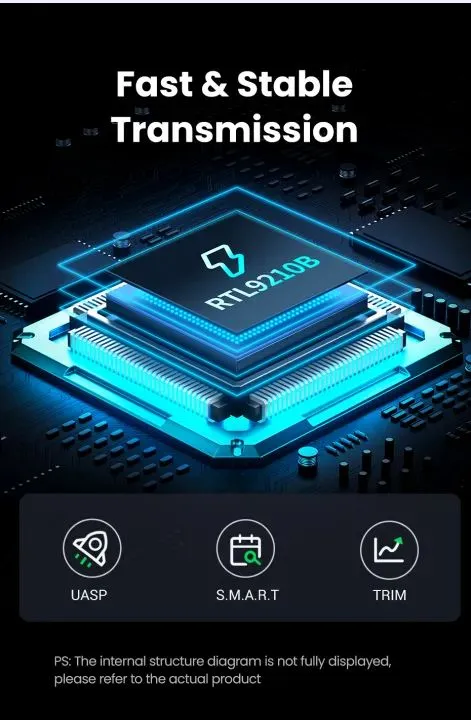 - ?Optimized Performance & Stability: Equipped with the latest chipset, the enclosure supports UASP (USB Attached SCSI Protocol) and TRIM commands, dramatically boosting read/write speeds and extending the lifespan of your SSD.