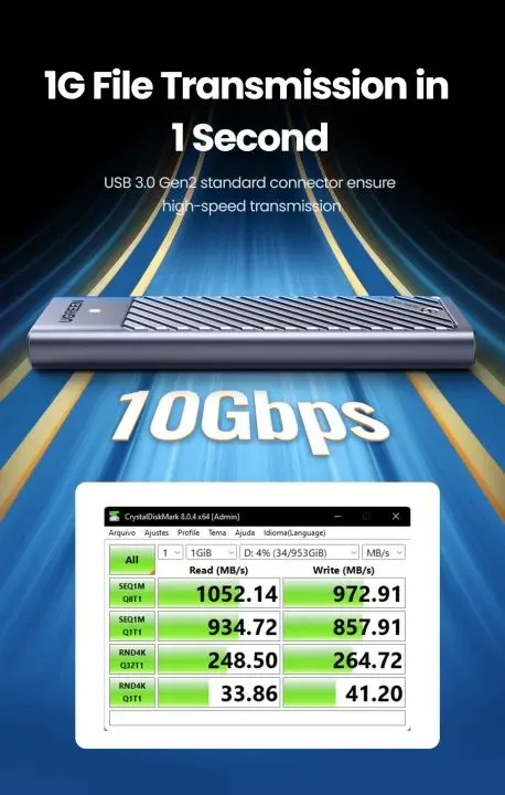 - * 10Gbps Ultra-Fast Speed: Featuring the advanced USB 3.2 Gen 2 Type-C interface, the enclosure delivers a maximum data transfer rate of up to 10Gbps. Transfer a 1GB file in seconds—perfect for handling 4K video, massive game files, and large data backups.