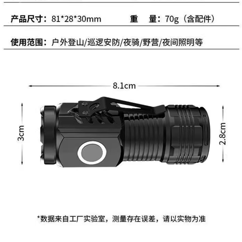 This USB rechargeable mini LED flashlight packs powerful performance in a compact size, delivering up to 800 lumens of brightness. Equipped with LED + COB dual light sources, it offers 8 versatile modes for any situation, from outdoor camping to emergency use. Designed with a tail magnet and pen clip, it attaches easily for hands-free operation. With a built-in 500mAh rechargeable battery and convenient Type-C charging, this portable tactical torch is a reliable everyday carry for work, travel, and adventure.
