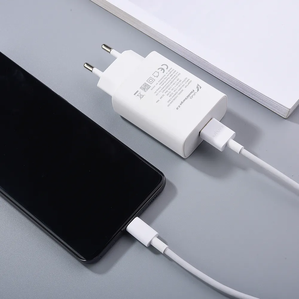 Never let a low battery slow you down. This authentic VIVO 33W Super VOOC Flash Charger is engineered to provide a lightning-fast, safe, and efficient charging experience for your compatible VIVO and iQoo smartphones. Paired with the included 6A USB Type-C cable, this combo unlocks the full potential of your device's charging capability, getting you back to 100% in a fraction of the time.